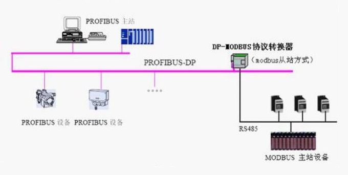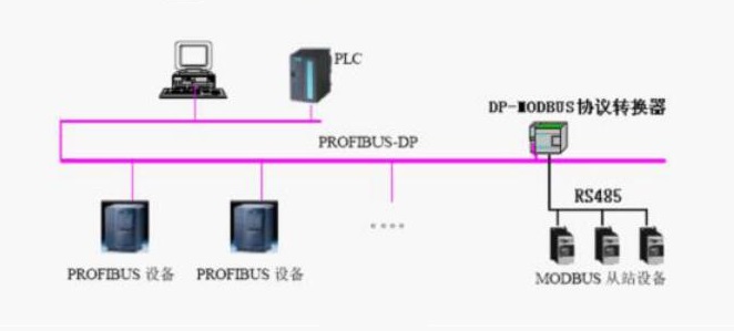 1、一端作為DP從站,連接西門子S7-300,另一端可作為Modbus主站,連接modbus從站設備,如儀表、變頻器、電機啟動保護、智能高低壓等。