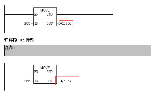 如圖,定義的是QB256-263,然后我想在程序中通過move指令向該區域賦值來測試modbus通訊,應該用PQB256,如下圖;