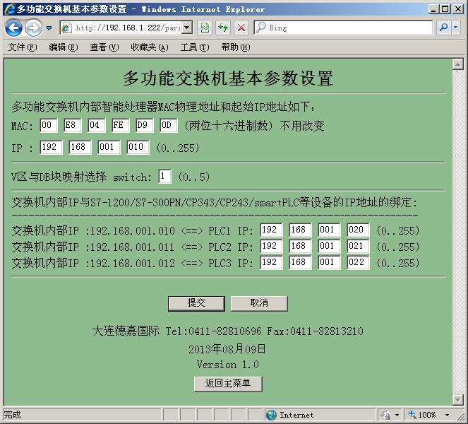 以上IP設置參數時需要將IP四個網段都填滿,如192.168.1.10,實際需要填寫192.168.001.010, 點擊“提交”后如參數更改不過來,