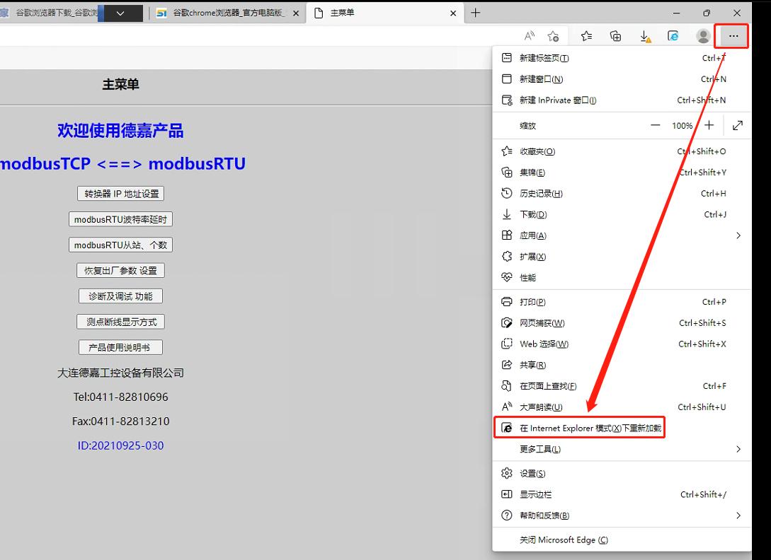 需要將ME瀏覽器改為Internet Explorer模式(X)下重新加載后重試!