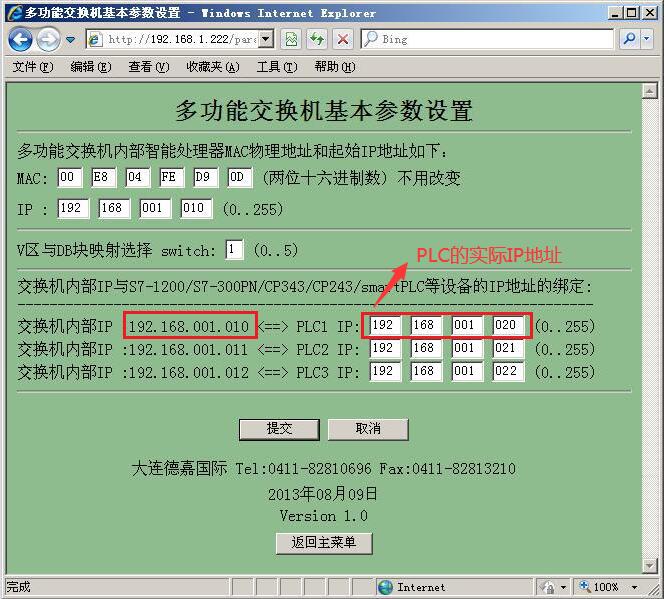 1.通過瀏覽器(地址欄輸入:192.168.1.222)進入到多功能交換機后門設置界面里參數設置如下。
