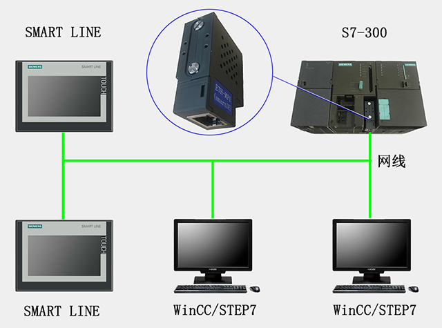 本產品用于將S7-300 PLC 的MPI/DP口轉換成網口,實現用于網線連接上位機、觸摸屏等。